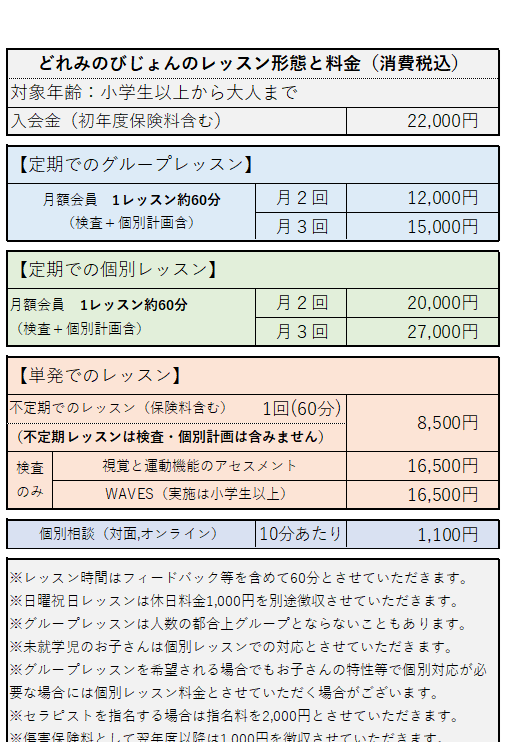 - ビジョントレーニング・感覚統合・原始反射統合・療育整体に対応しています。